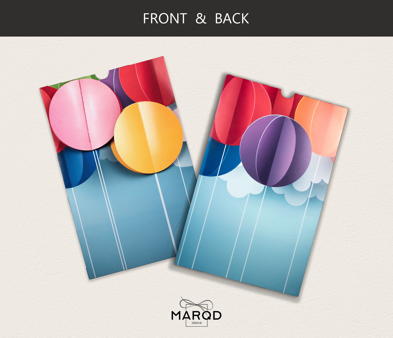 Celebrate big with bold color and a pop of dimension. The Balloon Pop MARQD Sleeve features vibrant balloons and layered 3D embellishments that add tactile joy to any gift. It’s playful, bright, and made to be remembered.