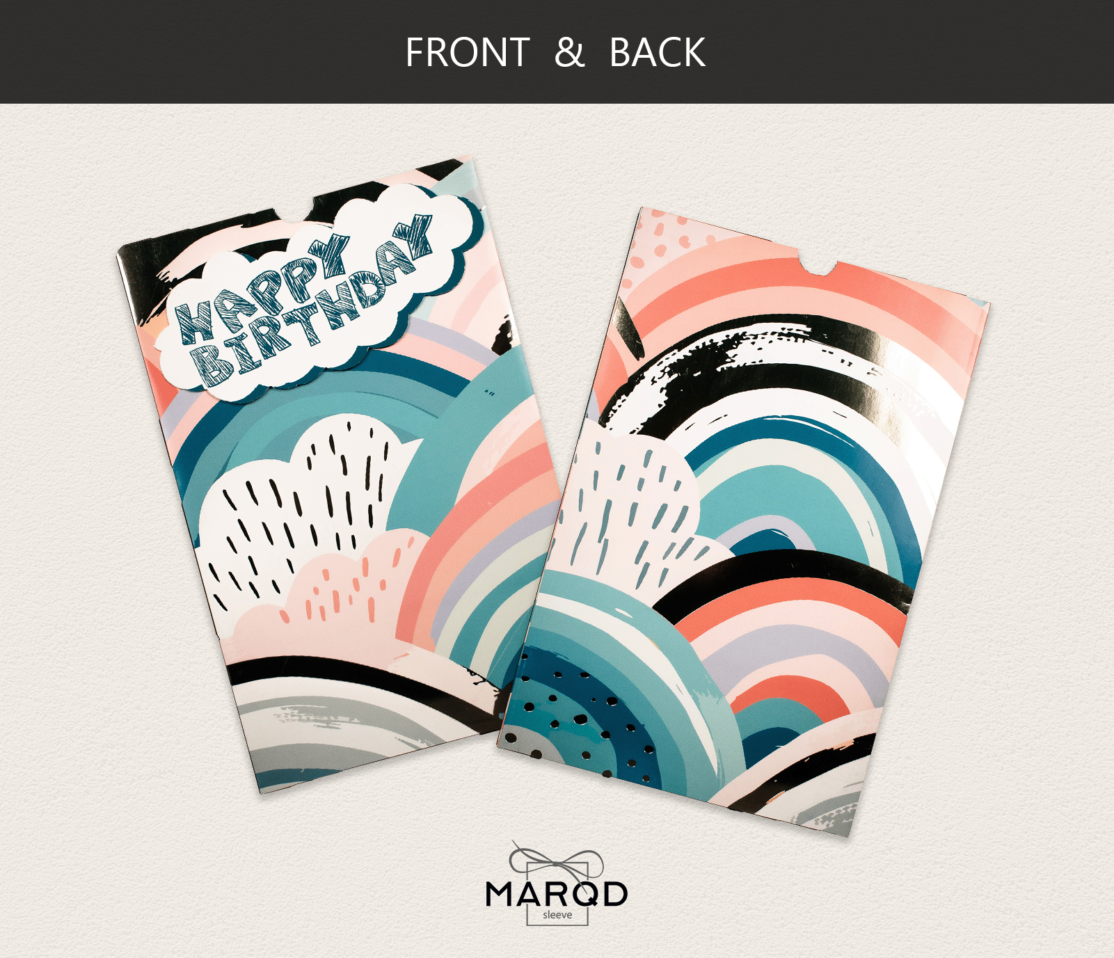 Dreamy pastels, metallic shimmer, and hand-drawn charm make the Birthday Sky MARQD Sleeve feel like a celebration in the clouds. With soft blues, blush tones, and “Happy Birthday” across a stylized skyline, this sleeve brings modern whimsy to any birthday gift.