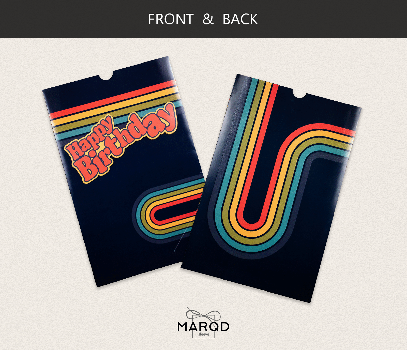 Bold, playful, and packed with nostalgic charm. The Birthday Retro MARQD Sleeve features vibrant stripes and a classic “Happy Birthday” callout that’s straight out of the ‘70s. With its signature fold-flat design, this sleeve is as fun to give as it is to receive.